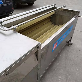 毛輥清洗機又稱毛輥刷清洗機、毛輥噴淋清洗機、去皮清洗機,主要用于貝殼類、根莖類果蔬的清洗去雜,例如:蛤蜊、扇貝、海虹、海螺等的貝類海產(chǎn)品的清洗,土豆、芋頭、花生、南瓜、紅薯、山藥、魔芋、生姜、圓蔥、蘿卜、蘋果、橘子、獼猴桃等的根莖類果蔬的清洗,工作原理是利用毛輥的轉(zhuǎn)動,物料間的相互摩擦,來去掉附著在被清洗物上的泥土、雜質(zhì),用毛輥絲較硬的毛輥可直接將土豆、芋頭等需要去皮工藝的物料進行去皮,利用噴淋式水流沖擊清洗,清除雜質(zhì)。